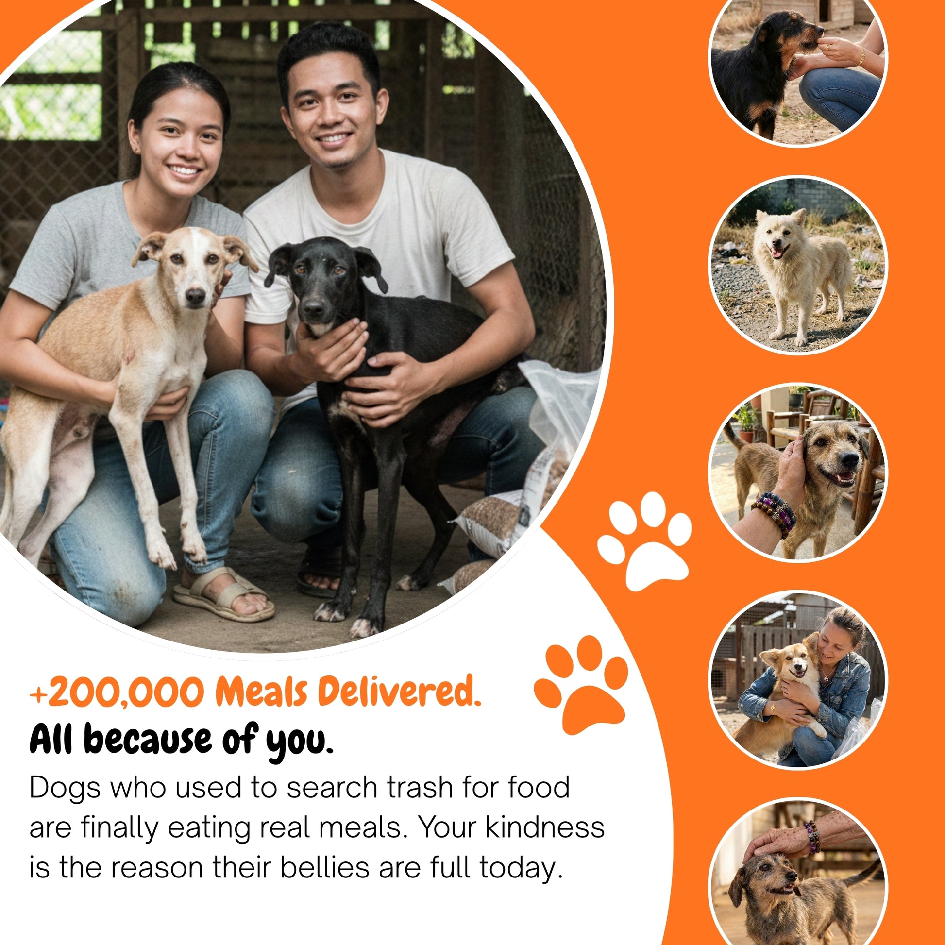 We're a small passionate team on a huge mission. Every item truly feeds 10 abandoned dogs—and you'll see the proof within 30 days.